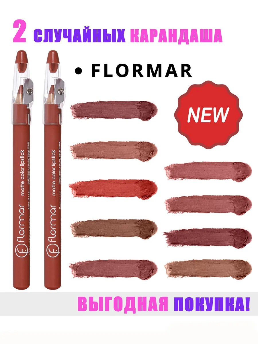 2 штуки в случайном цвете! Карандаш для губ производства Корея с точилкой, два (2) в упаковке. Карандаш в случайном порядке! Карандаши Flormar, карандаш flormar