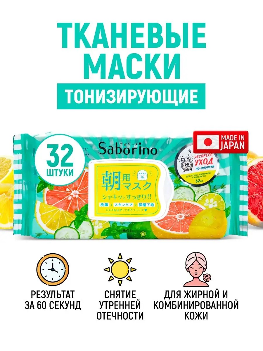 Saborino Экспресс маски для лица тканевые тонизирующие 32 шт