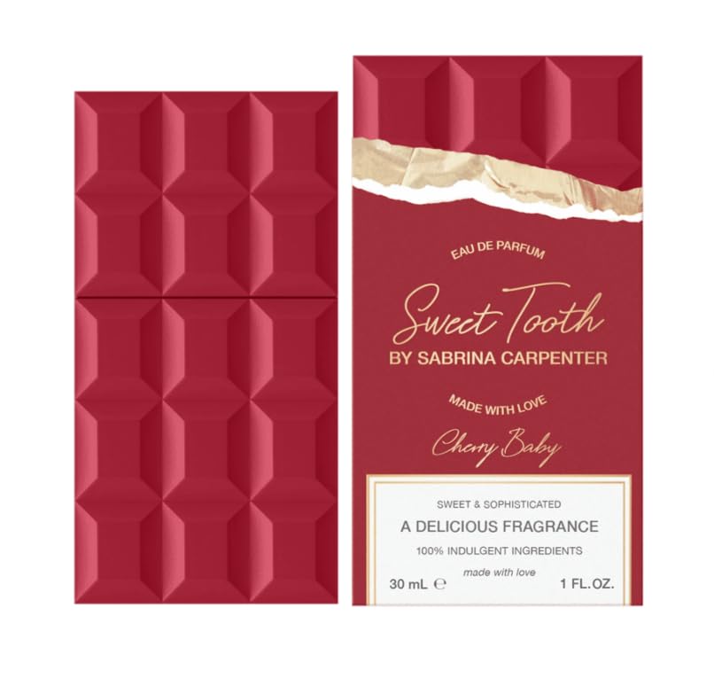 ?With her debut fragrance, Sabrina is expanding her creative force into a new category. Inspired by Sabrina’s love of desserts, “Cherry Baby” by Sabrina Carpenter Eau de Parfum indulges the sweet tooth with a fragrance good enough to eat. The scent is sweet, yet sophisticated and reminiscent of the irresistible joy of a candy shop, filled with creamy chocolate, pops of color, swirls, and sweets. The gourmand fragrance features notes of chocolate marshmallow, vanilla, Chantilly cream, and sugared musks. Sweet and petite, the bottle is modeled from the shape of a chocolate bar but reinvented in faceted glass with tones of pink and rose gold. The bottle sparkles with delight and becomes an art piece for all to unwrap and experience. “Creating my own fragrance has always been a dream. Everyone knows that I have a serious sweet tooth, which was the inspiration for the scent. I can’t wait to share this fragrance with my fans.” - Sabrina~Carpenter
