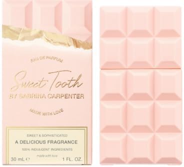 ?With her debut fragrance, Sabrina is expanding her creative force into a new category. Inspired by Sabrina’s love of desserts, “Sweet Tooth” by Sabrina Carpenter Eau de Parfum indulges the sweet tooth with a fragrance good enough to eat. The scent is sweet, yet sophisticated and reminiscent of the irresistible joy of a candy shop, filled with creamy chocolate, pops of color, swirls, and sweets. The gourmand fragrance features notes of chocolate marshmallow, vanilla, Chantilly cream, and sugared musks. Sweet and petite, the bottle is modeled from the shape of a chocolate bar but reinvented in faceted glass with tones of pink and rose gold. The bottle sparkles with delight and becomes an art piece for all to unwrap and experience. “Creating my own fragrance has always been a dream. Everyone knows that I have a serious sweet tooth, which was the inspiration for the scent. I can’t wait to share this fragrance with my fans.” - Sabrina~Carpenter