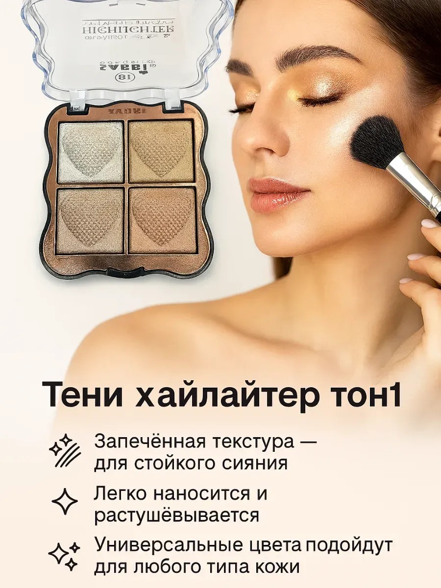 Тени хайлайтеры — идеальное решение для макияжа глаз и сияющего акцента на лице. Ультрапигментированная палетка из четырёх запечённых оттенков сочетает функции теней и хайлайтера, обеспечивая яркое свечение и выразительный макияж. Светоотражающие частицы создают эффект влажного блеска, подчёркивая внутренние уголки глаз, скулы, спинку носа и надбровную зону. Универсальные цвета — от холодного серебристого до тёплого золотисто-розового — подойдут для любого тона кожи. Мягкая текстура легко наносится, растушёвывается и надёжно фиксируется без осыпания в течение дня. Тени хайлайтеры подходят для дневного и вечернего макияжа, визуально освежают взгляд и делают кожу более ухоженной. Палетка компактна и удобна в использовании, идеально подойдёт как для профессиональных визажистов, так и для повседневного применения. Высокая стойкость, насыщенные оттенки и натуральное сияние делают этот продукт незаменимым в любой косметичке.