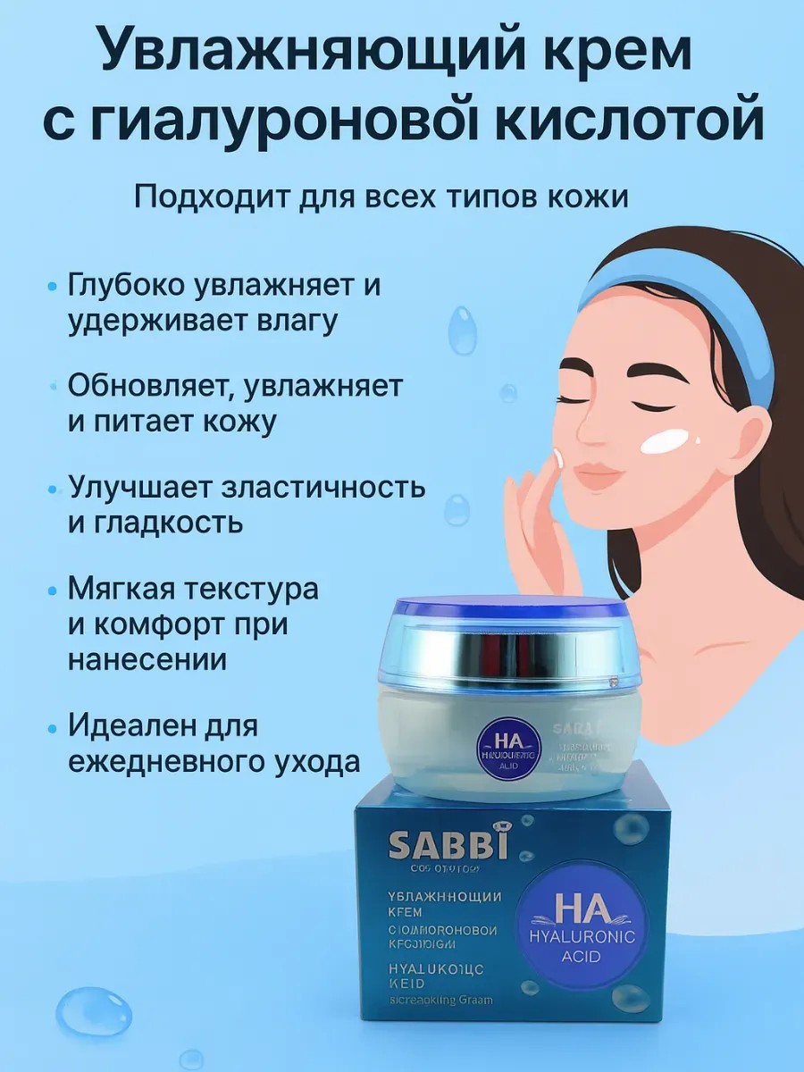 Увлажняющий крем для лица с гиалуроновой кислотой — это эффективное средство для ежедневного ухода за кожей, обеспечивающее глубокое увлажнение и питание. Благодаря гиалуроновой кислоте крем интенсивно восстанавливает водный баланс, смягчает, выравнивает текстуру кожи и повышает её эластичность. Формула разработана для всех типов кожи, включая сухую, жирную, чувствительную и комбинированную. Лёгкая текстура быстро впитывается, не оставляя липкости и жирного блеска. Крем помогает устранить сухость, шелушение, ощущение стянутости и усталости кожи. Подходит для утреннего и вечернего ухода, отлично работает как основа под макияж. Рекомендуется женщинам и девушкам, ищущим эффективный увлажняющий крем для лица с гиалуроновой кислотой, который делает кожу мягкой, гладкой и сияющей. Крем для лица с гиалуроновой кислотой купить можно для комплексного ухода, особенно в сезон, когда коже не хватает влаги. Идеальный выбор для тех, кто ищет лучший увлажняющий крем для сухой и обезвоженной кожи на каждый день.