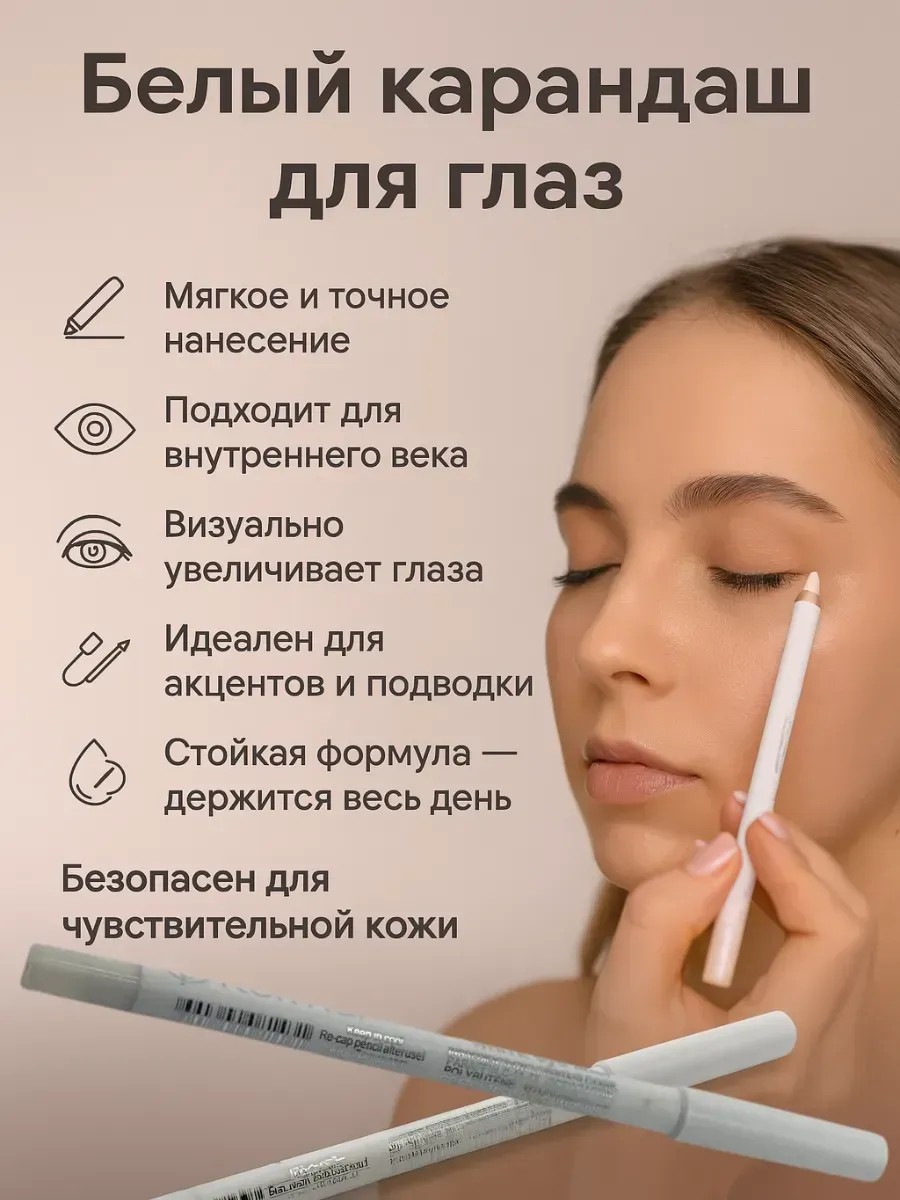 Белый карандаш для глаз Vivienne Sabo — идеальный выбор для создания выразительного и свежего макияжа. Карандаш с мягкой текстурой подходит для внутреннего века, визуально увеличивает глаза и делает взгляд более открытым. Средство легко наносится, не раздражает чувствительную кожу и подходит для ежедневного использования. Белый контурный карандаш часто используется для акцентов, светлых линий и эффекта "распахнутых глаз". Косметический карандаш удобен в использовании, не требует специальной заточки и надежно держится в течение дня. Этот карандаш незаменим для профессионального и повседневного макияжа глаз. Карандаш имеет качественный состав и безопасен даже для чувствительных глаз. Отлично подходит как для начинающих, так и для визажистов.