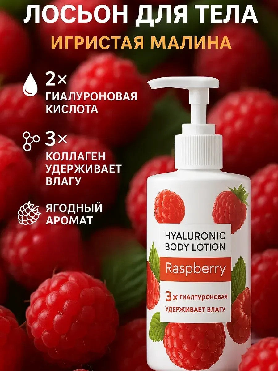 Выбирайте гиалуроновый лосьон для тела «Малина» — натуральное увлажнение, питание и бархатистая кожа без стянутости и сухих участков!