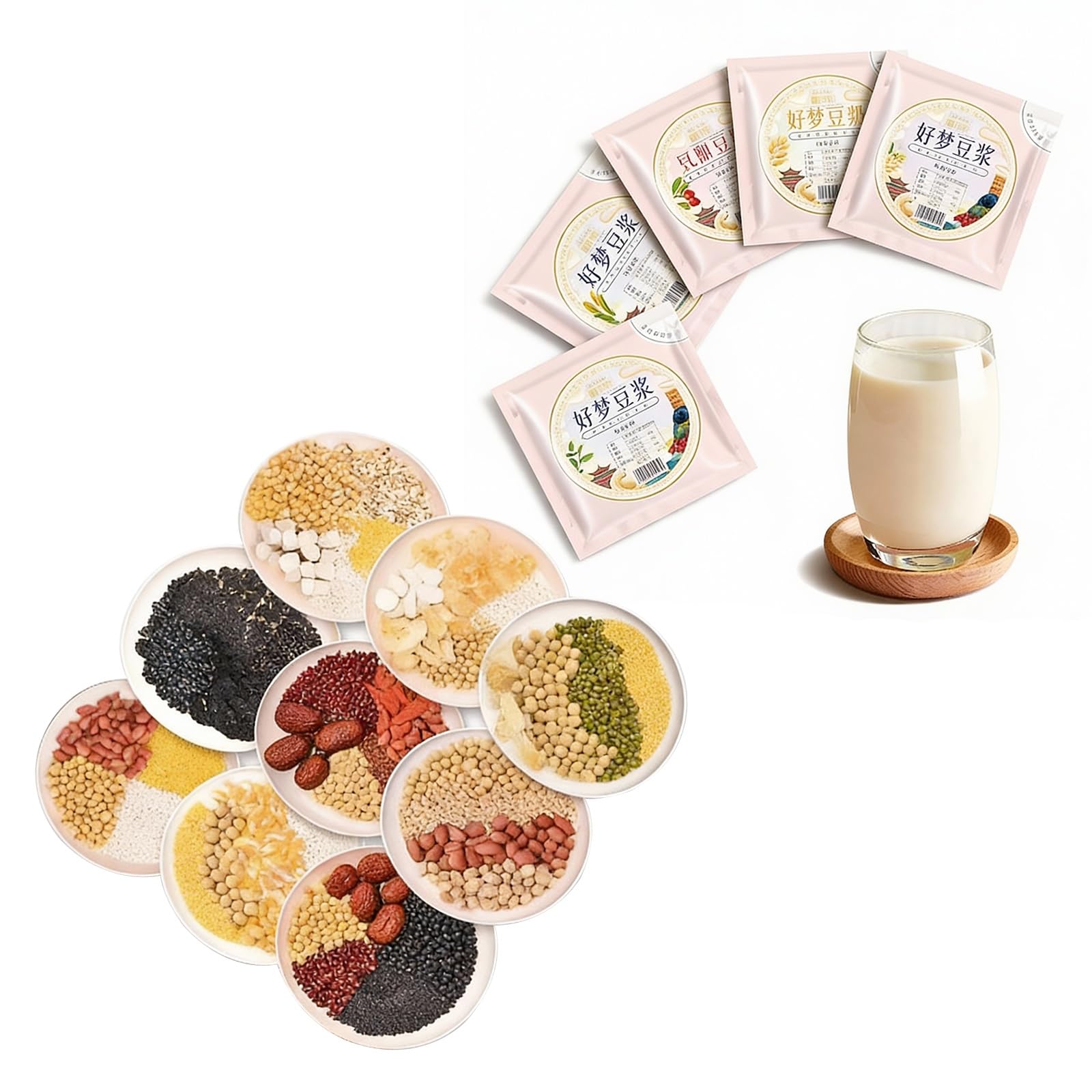 Sachets De Lait En Poudre De Soja 10 Saveurs-70g X 10 Sachets, Mélange De Céréales For Mélangeur, Ingrédients Nutritifs For Petit Déjeuner, Rapide Et Facile
