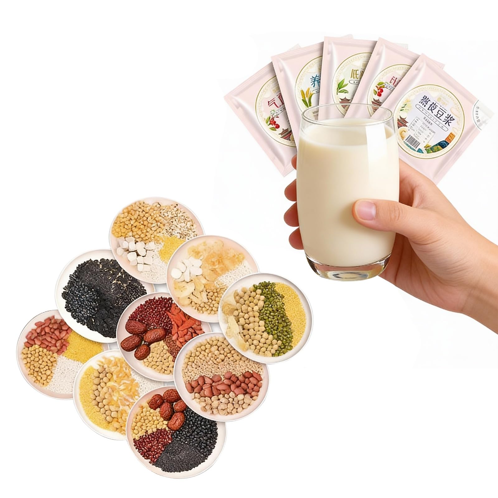 Sachets De Lait En Poudre De Soja 10 Saveurs, Paquet De 70 G X 10, Mélange De Petit-déjeuner Multigrains For Mélangeur, Lait De Soja Crémeux Instantané, Ingrédients En Vrac