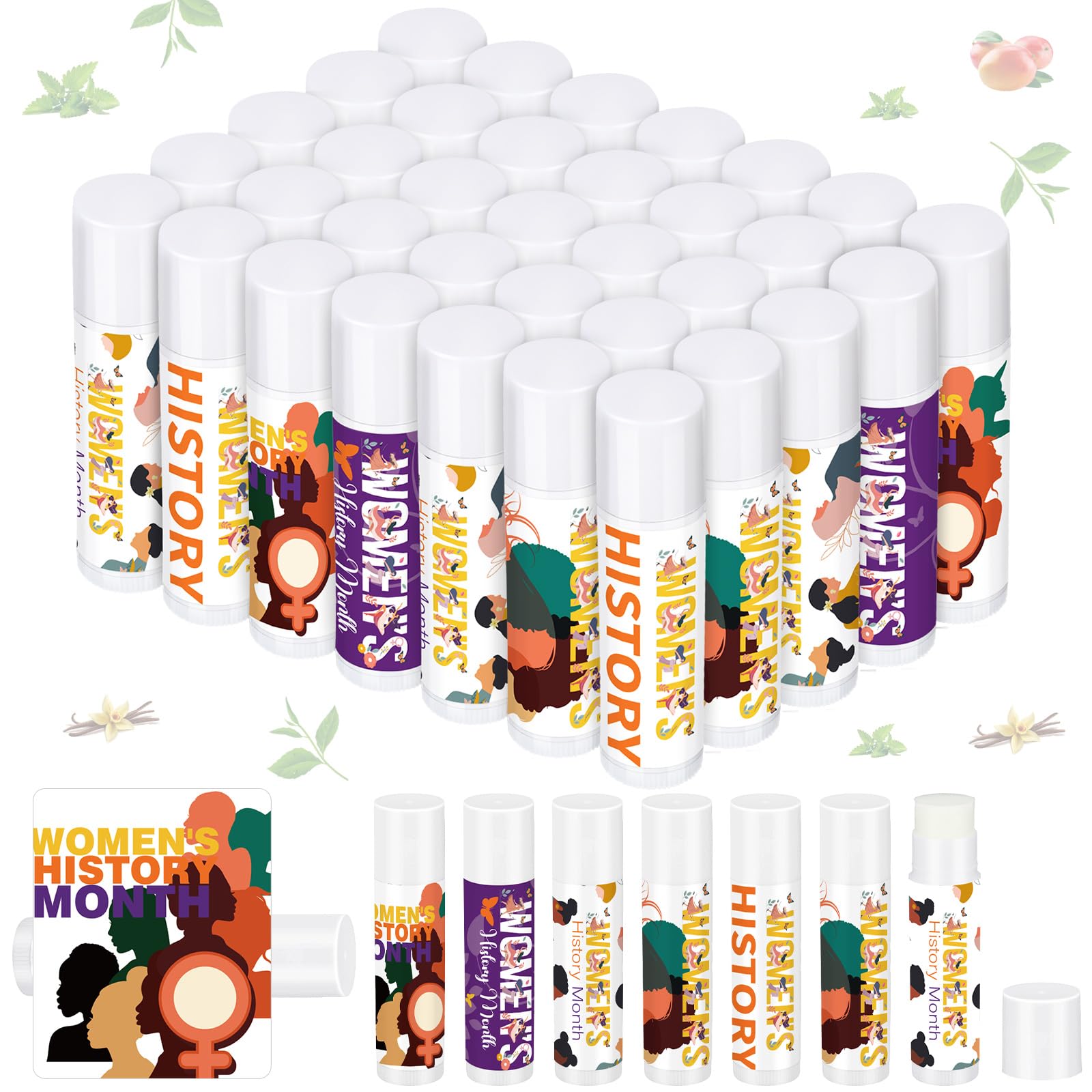 Sacubee 50 Pcs Women's History Month Lip Balm Bulk Vanilla Sunscreen Lip Balm Gift for Women's History Month Theme Favor Public Event Supplies 5 Scents
