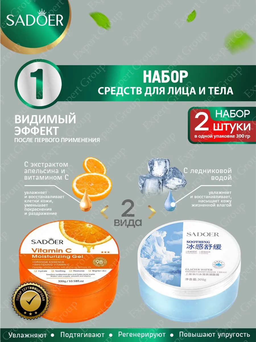 | Комплектация | Набор для лица и тела Sadoer гель с экстрактом апельсина и витамином С + крем с ледниковой водой |