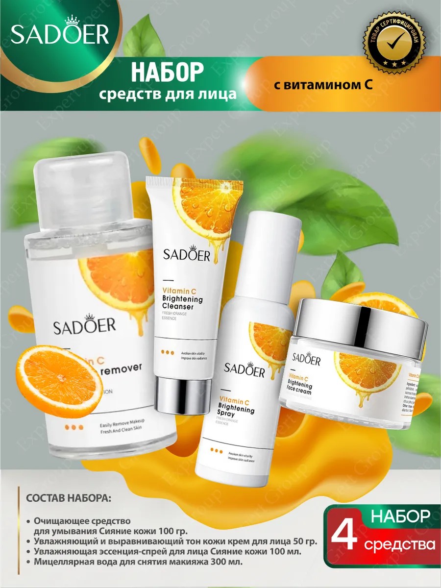 | Комплектация | Набор Sadoer с витамином С очищающее средство + Крем для лица + Эссенция + Мицеллярная вода |