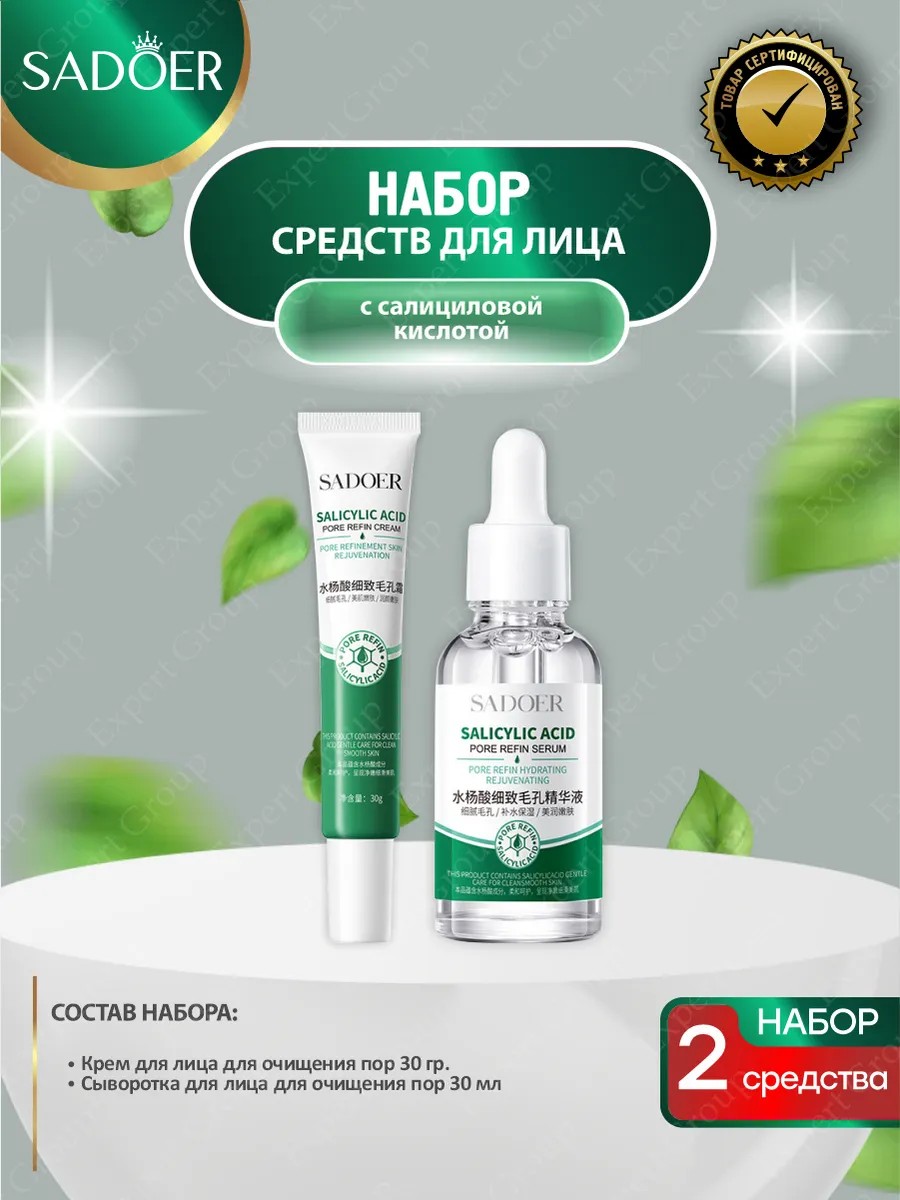 | Комплектация | Набор средств для очищения пор Sadoer с салициловой кислотой сыворотка 30 мл. + крем 30 гр |