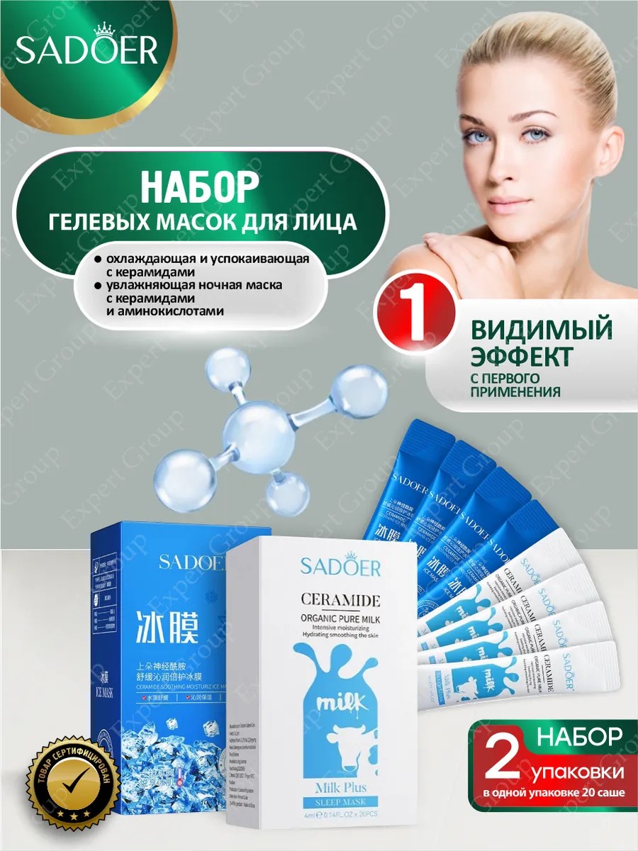 | Комплектация | Набор гелевых масок для лица Sadoer Охлаждающая с керамидами + ночная с керамидами и аминокислотами |