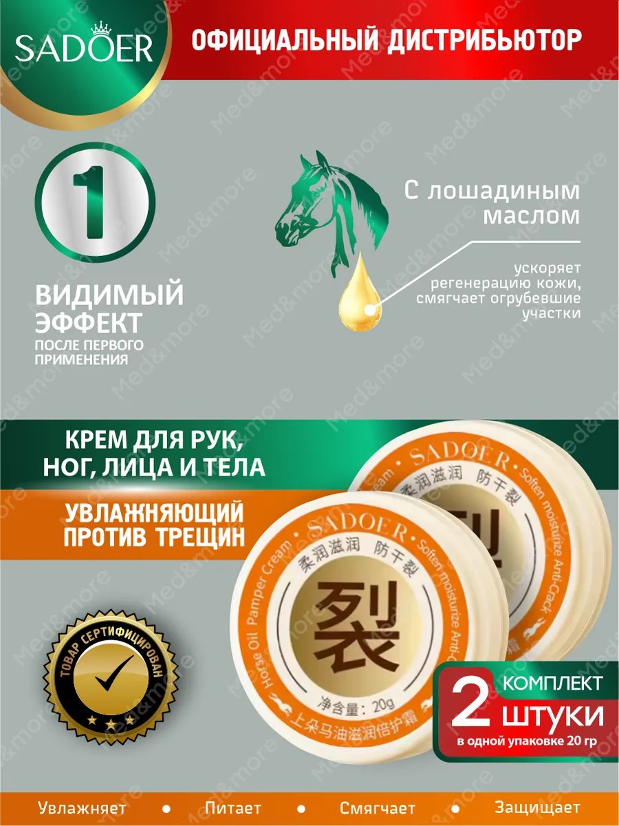 Sadoer Moisturizing Body Cream for Cracks with Horse Oil, 20g, 2 pcs.