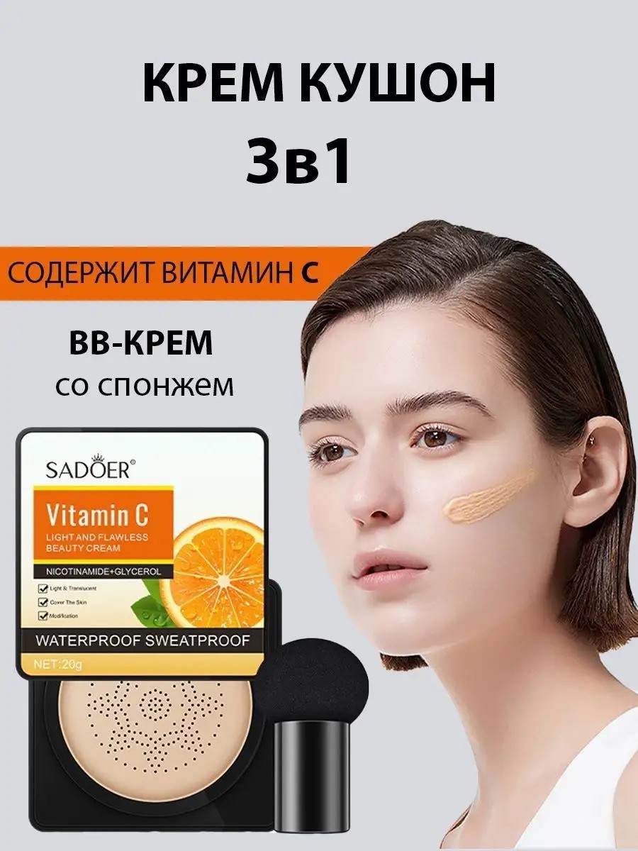 Кушон-это единственное косметическое тональное средство, которое объединяет свойства тонального крема, пудры и BB-крема. В нашем кушоне содержатся ухаживающие и увлажняющие компоненты - это значит, что он способен заменить и дневное увлажняющее средство. Идеально выравнивает тон кожи, перекрывает тёмные круги под глазами, покраснения на лице, пигментацию и другие несовершенства. Основа не только маскирует недостатки, но и ухаживает за кожей: питает и смягчает ее, поддерживает оптимальный уровень увлажненности в течении всего дня и контролирует работу сальных желез, предотвращая появление жирного блеска. Кушон SADOER содержит витамин C который :Стимулирует выработку коллагена в дерме.Борется со всеми проявлениями фотостарения: утолщением и неровностью кожи, пигментными пятнами.Угнетает выработку эумеланина, что способствует осветлению кожи и возвращению ей сияния.Противовоспалительные свойства позволяют использовать его для заживления ран.