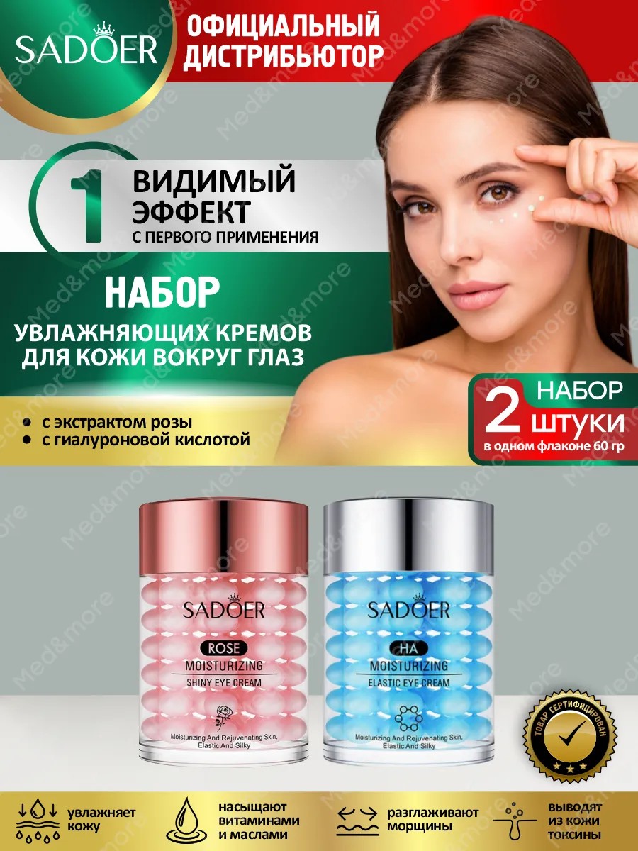 | Полное наименование товара | Набор увлажняющих кремов для кожи вокруг глаз Sadoer с экстрактом розы + с гиалуроновой кислотой |