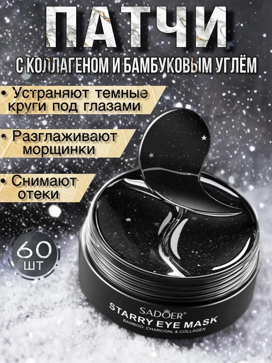 Гидрогелевые патчи с пептидами морского коллагена и экстрактом бамбукового угля от Sadoer– идеальное средство для ухода за кожей вокруг глаз. Благодаря высокому содержанию полезных веществ они отлично справляются с темными кругами, отеками, морщинами и мешками под глазами. Патчи увлажняют и освежают кожу лица, возвращая ей упругость и эластичность. Благодаря натуральному составу, патчи полностью растворимы в воде. Входящие в состав экстракт бамбукового угля, масло ши, коллаген и гиалуроновая кислота проникают в глубокие слои кожи, улучшают ее состояние, способствуют выработке собственного коллагена и защищают от воздействия неблагоприятных факторов окружающей среды, что делает данный продукт идеальным для антивозрастного ухода. Наши патчи одноразовые, что гарантирует Вам максимальную гигиену. После использования вы сможете наслаждаться результатами в течение длительного времени. Наши патчи - оригинальная продукция Китайского бренда Sadoer, состоящая из компонентов корейского происхождения, созданная по формулам топовых брендов Корейской косметики, которая предлагает эффективный и приятный уход за кожей вокруг глаз. Уникальная формула с гелевой текстурой и насыщенным набором активных ингредиентов делает эти патчи незаменимым средством для ухода против морщин и отеков. Основа патчей обеспечивает оптимальную фиксацию на коже, благодаря чему они надежно крепятся, что позволяет активным компонентам проникать в глубокие слои кожи и оказывать свое положительное воздействие. Это удобный и эффективный способ обеспечить своим глазам великолепный и ухоженный вид. Патчи адаптированы к применению на всех типах кожи: нормальной, сухой, жирной и комбинированной. Регулярное применение поможет поддерживать молодость и красоту без лишних усилий. Забудьте о синяках и неравномерном тоне – с патчами Sadoer Вы получите желаемый результат за короткий срок. Эффект виден уже после нескольких применений.