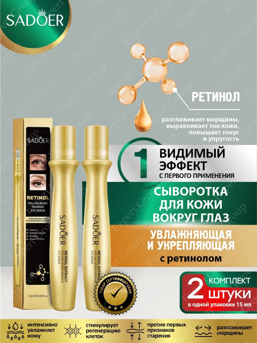 | Полное наименование товара | Комплект Увлажняющая и укрепляющая сыворотка для кожи вокруг глаз Sadoer с ретинолом 15 мл. х 2 шт |