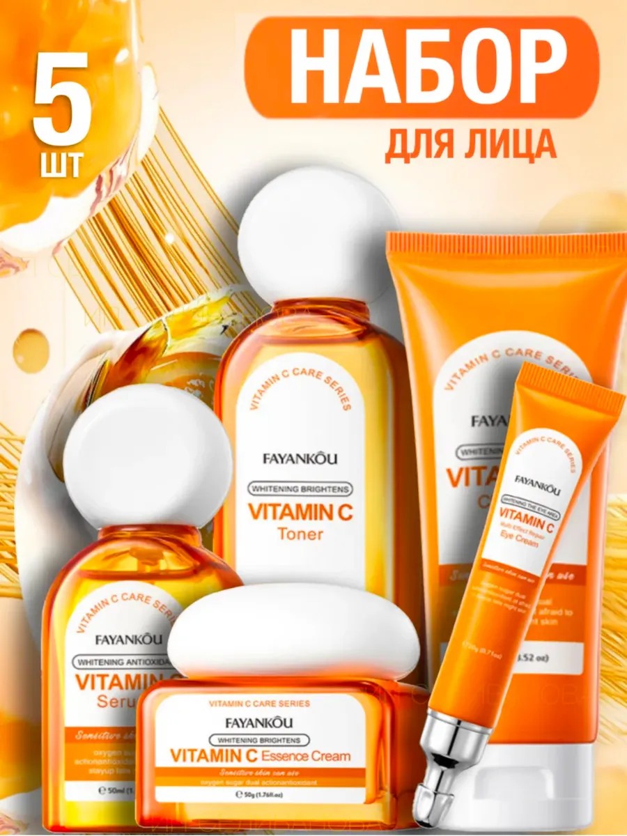 Уходовый набор для девушек и женщин. Осветляющий эффект, выравнивает тон кожи. Помогает отбеливать пигментные пятна. Витамин С в составе, защищает кожу, оказывает омолаживающий эффект. В составе бьюти бокса пенка для умывания и тонер. Увлажняющая сыворотка и крем для сияющей кожи. Крем для кожи вокруг глаз от темных кругов под глазами и борьбы с мимическими морщинками.