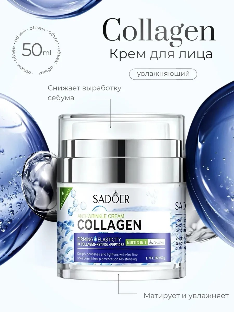 Универсальный крем для лица увлажняющий с коллагеном обеспечит качественное увлажнение и восстановление липидного барьера кожи. Такой уход за лицом защитит кожу от обезвоживания и негативного влияния окружающей среды. Дневной крем для лица антивозрастной ничем не хуже корейской косметики и действует как витаминный коктейль для кожи, который глубоко увлажняет, быстро впитывается и не оставляет ощущения пленки на лице. Подарите своей коже уход, который вы заслуживаете. Зайдите на наш магазин бренда SADOER OFFICIAL, где представленна огромный ассортимент уходовой и декоративной косметики и соберите свой идеальный косметический набор, который идеально подойдет в качестве подарка сестре, коллеге на людой праздник и просто так. Он крем для лица от морщин станет отличной «дышащей» основой для макияжа и подходит для кожи любого типа и всех возрастов. Мы объединили лучшие качества ингредиентов для длительного увлажнения и базового ухода за кожей любого типа. Витамин С сокращает процесс пигментации, осветляет постакне и мелкие несовершенства, заживляет воспаления и улучшает локальный иммунитет клеток кожи. Как эффективный антиоксидант, витамин С способен «захватывать» и нейтрализовывать свободные радикалы, которые разрушают коллаген, эластин и липидные волокна в клетках кожи, приводя к преждевременному старению. Дополнительную порцию антиоксидантов для красоты и молодости кожи добавляют экстракты апельсина, винограда и витамин Е. В увлажняющий крем для лица входит активные компонентов способствует разглаживанию рельефа крем для лица от морщин, повышается эластичность кожи, выравнивается тон лица, проходят признаки сухости, высыпаний и ранних морщинок. Используйте ночной крем для лица утром после очищения, тонизирования кожи и перед нанесением SPF-крема. Крем для лица дневной упакован в алюминиевую тубу — лёгким нажатием можно отрегулировать необходимое количество для экономичного расхода. Наносите на лицо, шею и зону декольте каждый раз, когда требуется увлажнение.