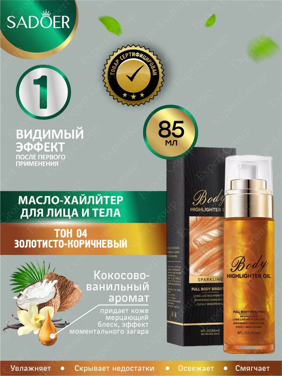 | Комплектация | Масло-хайлайтер для лица и тела Sadoer тон 04 Золотисто-коричневый 85 мл. |