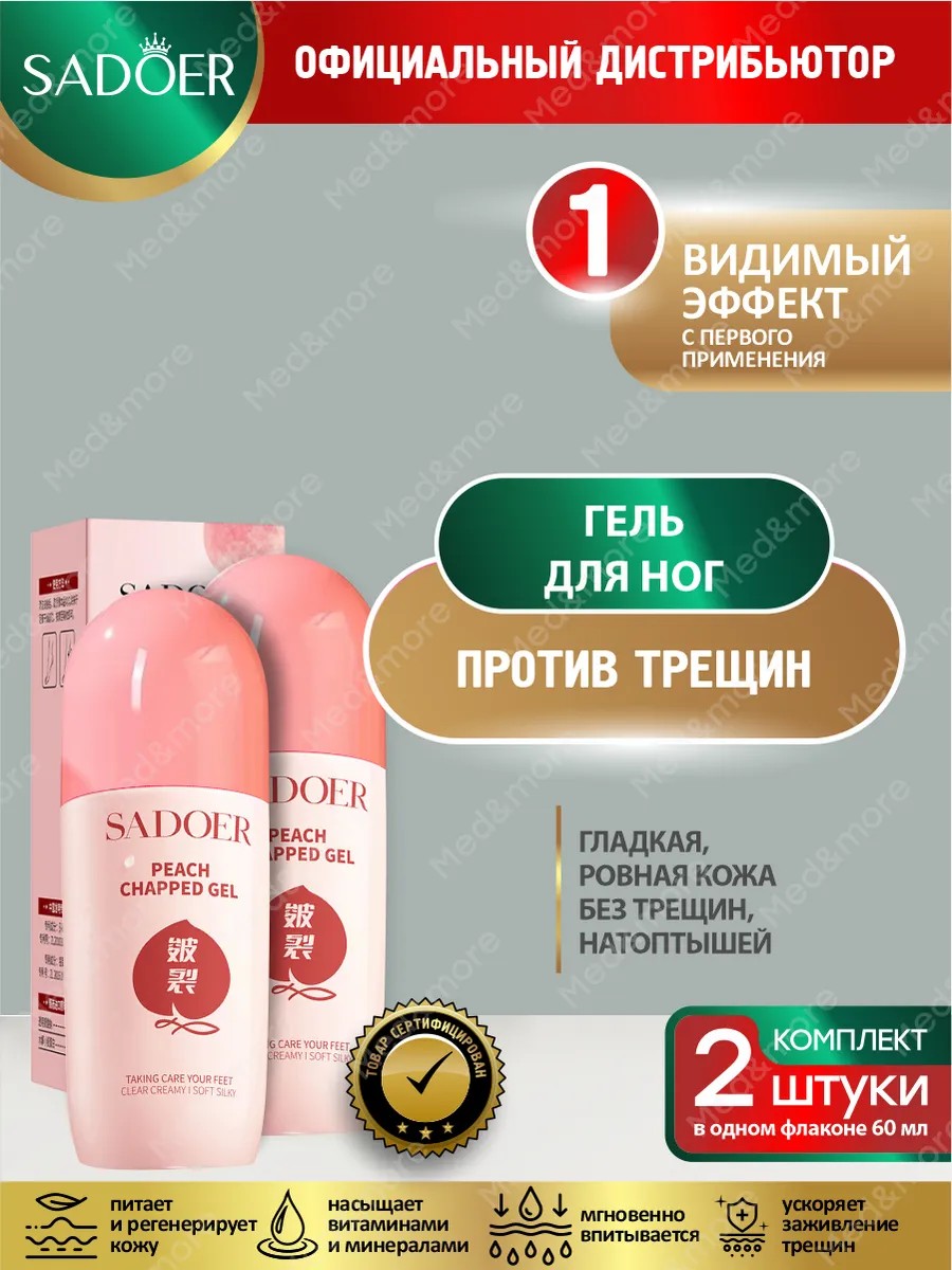 | Полное наименование товара | Комплект Увлажняющий и размягчающий гель для ног от трещин Sadoer с экстрактом персика 60 мл. х 2 шт |