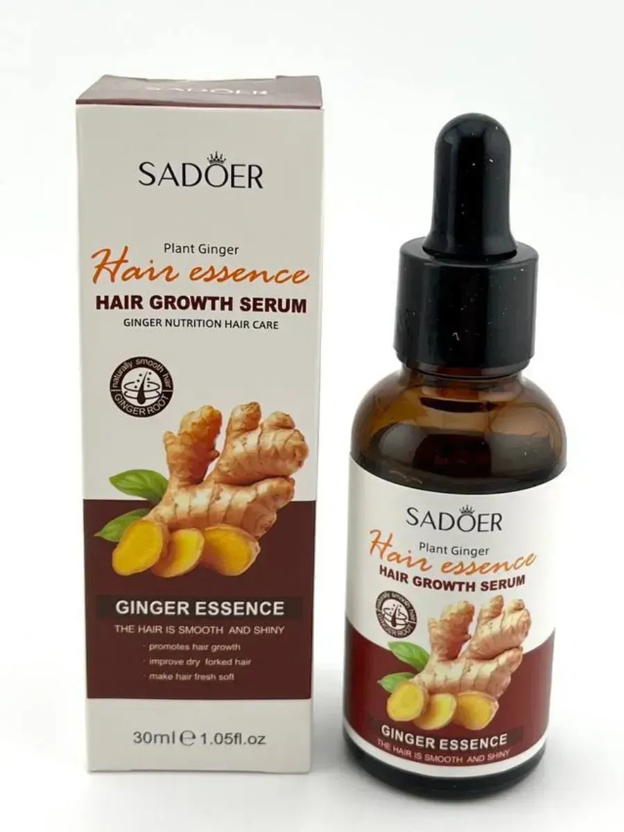 Сыворотка для роста волос с корнем имбиря Sadoer Plant Ginger Hair Essence увлажняет и смягчает волосы, способствует улучшению состояния сухих волос и секущихся кончиков. Делает волосы мягкими и блестящими, наполняет их жизненной силой. Сыворотка активизирует процессы роста, помогает уменьшить выпадения. Проникает в корень каждого волоска, стимулируя волосяные фолликулы, улучшая кровообращение и ускоряя процессы роста новых волос.Экстракт имбиря ускоряет рост локонов (благодаря улучшению притока крови к волосяным луковицам), избавляет от перхоти и зуда, нормализует работы сальных желез (что особенно актуально при повышенной жирности кожи головы и волос). Имбирь - натуральный антиоксидант, содержащий компоненты, которые оберегают кожу головы от облысения и воздействия свободных радикалов. Также имбирь - природный кондиционер. Благодаря богатому составу и содержанию эфирных масел, он делает локоны гладкими, блестящими и послушными.