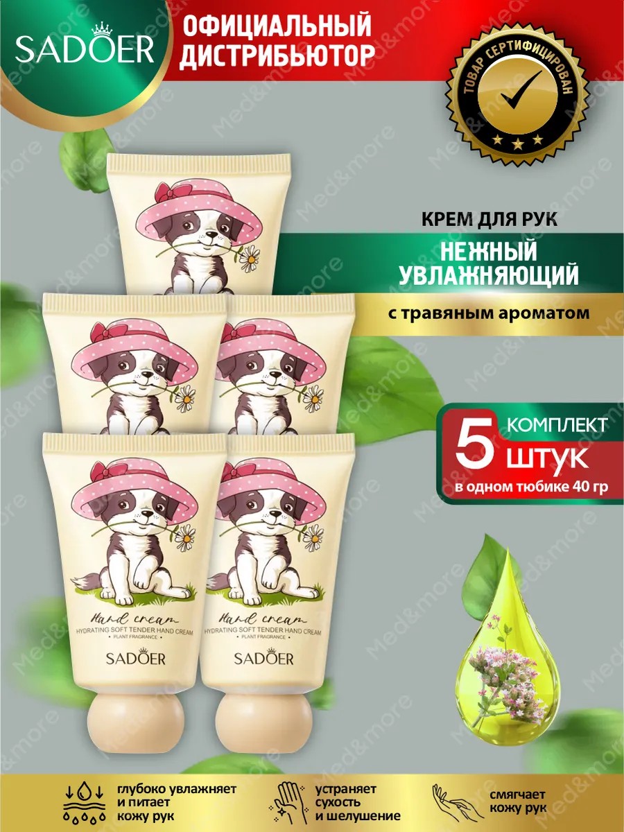 | Полное наименование товара | Комплект Нежный увлажняющий мягкий крем для рук Sadoer с травяным ароматом 40 гр х 5 шт. |
