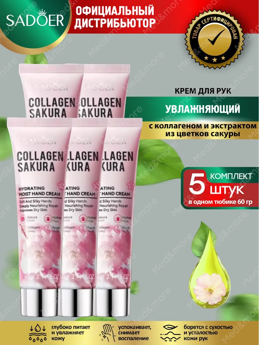 | Полное наименование товара | Комплект Увлажняющий крем для рук Sadoer с коллагеном и экстрактом из цветков сакуры 60 гр х 5 шт. |