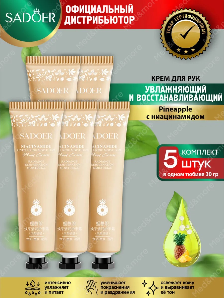 | Полное наименование товара | Комплект Восстанавливающий и увлажняющий крем для рук Sadoer Pineapple с ниацинамидом 30 гр х 5 шт. |
