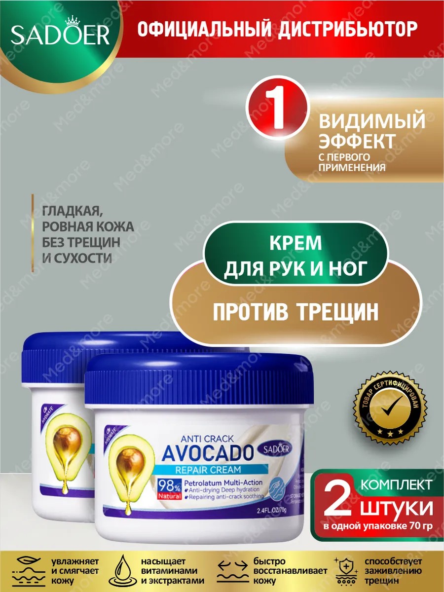 | Полное наименование товара | Комплект Восстанавливающий крем против трещин Sadoer с вазелином и экстрактом авокадо 70 гр х 2 шт. |