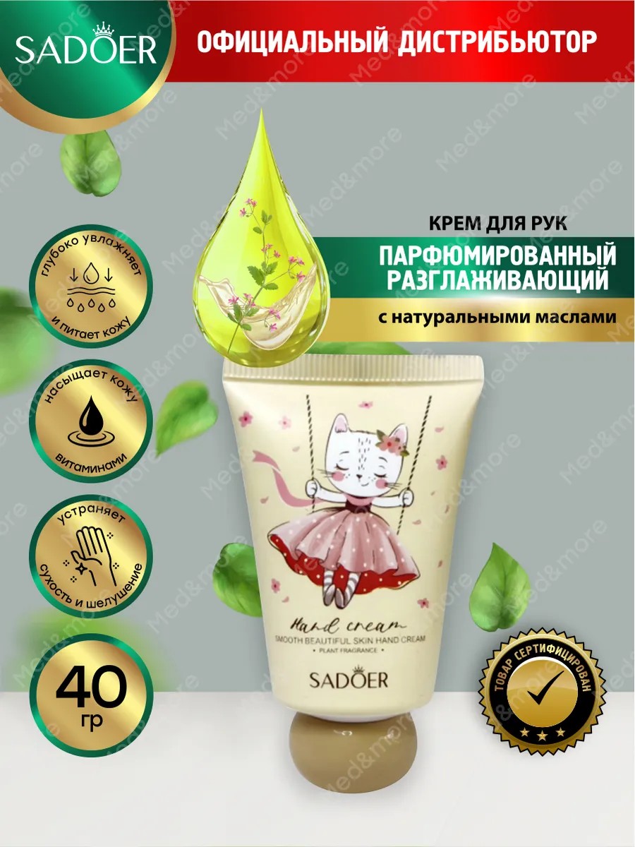 | Полное наименование товара | Парфюмированный разглаживающий крем для рук Sadoer с натуральными маслами 40 гр |