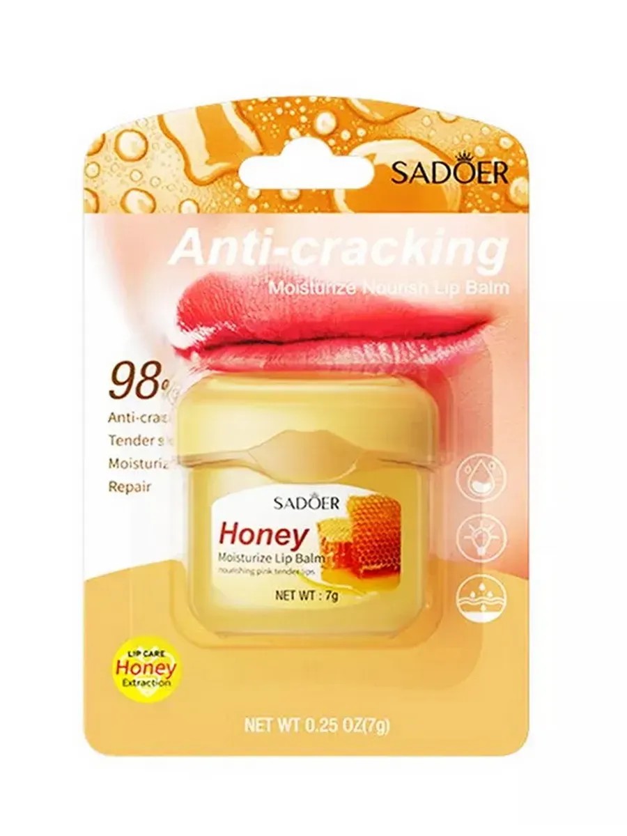 SADOER Honey Moisturizing Anti-Cracking Lip Balm 7g. Experience sunny summer with this honey-flavored moisturizing lip balm! This balm will leave your lips soft and smooth. Vitamins F and E, found in shea and peach butter, deeply moisturize and nourish, protecting lips from dryness and flaking. This product is formulated with beeswax enriched with jojoba and shea butters, vitamins E and C, and beneficial berry and plant extracts. This lip balm coats the skin with a thin film, reliably protecting and moisturizing for several hours.