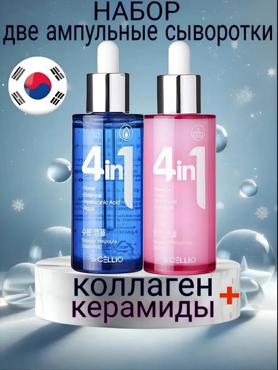 Две сыворотки для интенсивного ухода за кожей: с керамидами и с коллагеном. Подтягивающая корейская сыворотка 4 в 1 — это уникальное средство, которое сочетает в себе сыворотку, лифтинг, омоложение и подтяжку.
