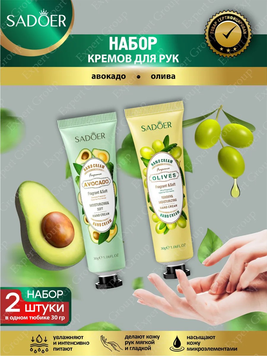 | Full product name | Set of moisturizing hand creams Sadoer avocado extract 30 gr. + Anti-aging olive extract 30 gr. |