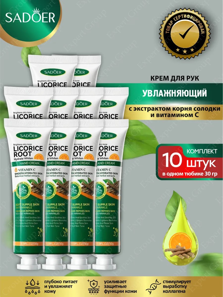 | Полное наименование товара | Комплект Увлажняющий крем для рук Sadoer с экстрактом корня солодки и витамином С 30 гр х 10 шт. |