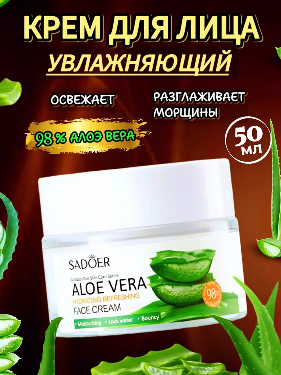 Восстанавливающий увлажняющий крем для лица с алоэ вера и витаминами — для комфорта вашей кожи в течение всего дня и в любой ситуации! Оригинальная профессиональная формула: средство на 98% из натурального экстракта алоэ, помогает вернуть коже гидролипидный баланс, насыщает ее влагой до глубоких слоев, эффективно и быстро помогает устранить стянутость, избавляет от шелушения, гусиных лапок и покраснений. Алоэ широко используется в Корее, способствует регенерации и активному обновлению клеток кожи, усиливает ее защитные свойства, душа корейской и китайской косметики. Обладает антивозрастным эффектом: препятствует снижению синтеза коллагена и эластина. Повышает тонус и упругость кожи, уменьшая количество морщин и замедляя появление новых признаков старения. Оказывает осветляющее действие и борется с пигментными пятнами. Кожа выглядит более свежей, тон лица становится ровным и сияющим. Успокаивающий регенерирующий легкий продукт эффективен для проблемной кожи, также подростковой и женской. Он снимает воспаления, отеки, улучшает микрорельеф, осветляет следы от воспалений, акне, постакне и прыщей, купероза и пигментации. Гипоаллергенный состав воздействует максимально бережно, не провоцирует воспалений. Питательные элементы помогают противостоять УФ-излучению, насыщают полезными веществами. Омолаживающий, он обеспечивает интенсивный уход уставшей коже с возрастными изменениями. Подходит для любого возраста: 25 лет, 30, 35, 40, 45, 50, 60 плюс, для женщин и девушек. Дает подтягивающий эффект, оказывает лифтинг - воздействие, делает овал лица более четким. Подходит перед макияжем, как база для всех типов кожи: для жирной, сухой, комбинированной, нормальной, молодой, чувствительной. Положительно влияет в женском, и в мужском уходе. Станет великолепным подарком на любой праздник. Особенно рекомендуем применять средство после загара или длительного воздействия холодного воздуха для возвращения чувства комфорта. Его можно использовать, для тела, шеи и рук, утром и вечером.
