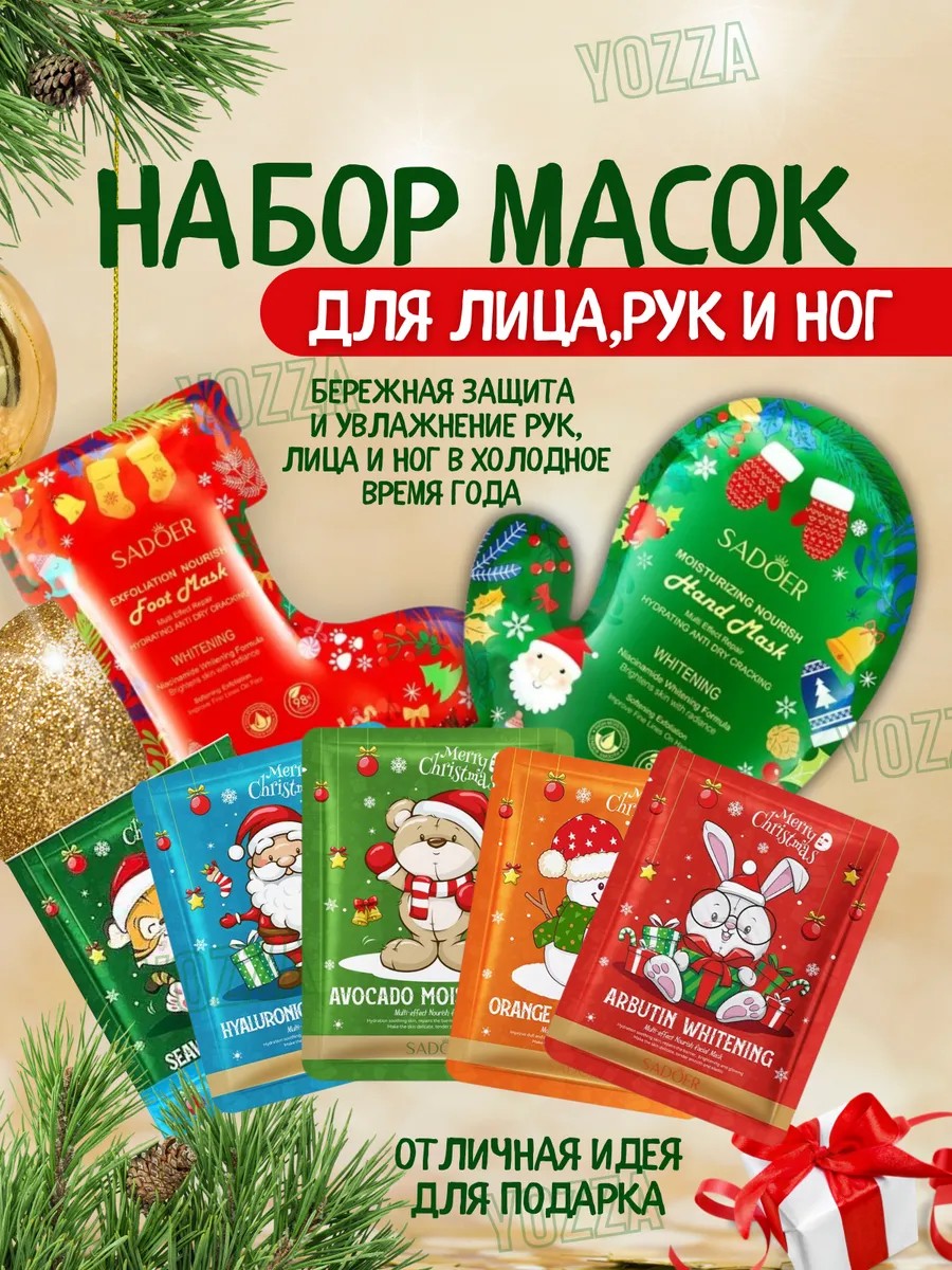 sadoer новогодний Набор масок для рук для ног и для лица