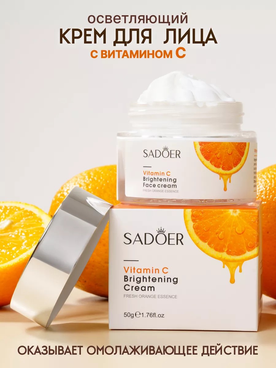 Универсальный крем для лица увлажняющий с экстракотом апельсина обеспечит качественное увлажнение и восстановление липидного барьера кожи. Такой уход за лицом защитит кожу от обезвоживания и негативного влияния окружающей среды. Дневной крем для лица антивозрастной ничем не хуже корейской косметики и действует как витаминный коктейль для кожи, который глубоко увлажняет, быстро впитывается и не оставляет ощущения пленки на лице. Подарите своей коже уход,который вы заслуживаете. Зайдите на наш магазин бренда SADOER OFFICIAL, где представленна огромный ассортимент уходовой и декоративной косметики и соберите свой идеальный косметический набор, который идеально подойдет в качестве подарка сестре, коллеге на людой праздник и просто так. Он крем для лица от морщин станет отличной «дышащей» основой для макияжа и подходит для кожи любого типа и всех возрастов. Мы объединили лучшие качества ингредиентов для длительного увлажнения и базового ухода за кожей любого типа. Витамин С сокращает процесс пигментации, осветляет постакне и мелкие несовершенства, заживляет воспаления и улучшает локальный иммунитет клеток кожи. Как эффективный антиоксидант, витамин С способен «захватывать» и нейтрализовывать свободные радикалы, которые разрушают коллаген, эластин и липидные волокна в клетках кожи, приводя к преждевременному старению. Дополнительную порцию антиоксидантов для красоты и молодости кожи добавляют экстракты апельсина, винограда и витамин Е. В увлажняющий крем для лица входит активные компонентов способствует разглаживанию рельефа крем для лица от морщин, повышается эластичность кожи, выравнивается тон лица, проходят признаки сухости, высыпаний и ранних морщинок. Используйте ночной крем для лица утром после очищения, тонизирования кожи и перед нанесением SPF-крема. Крем для лица дневной упакован в алюминиевую тубу — лёгким нажатием можно отрегулировать необходимое количество для экономичного расхода. Наносите на лицо, шею и зону декольте каждый раз, когда требуется увлажнение.