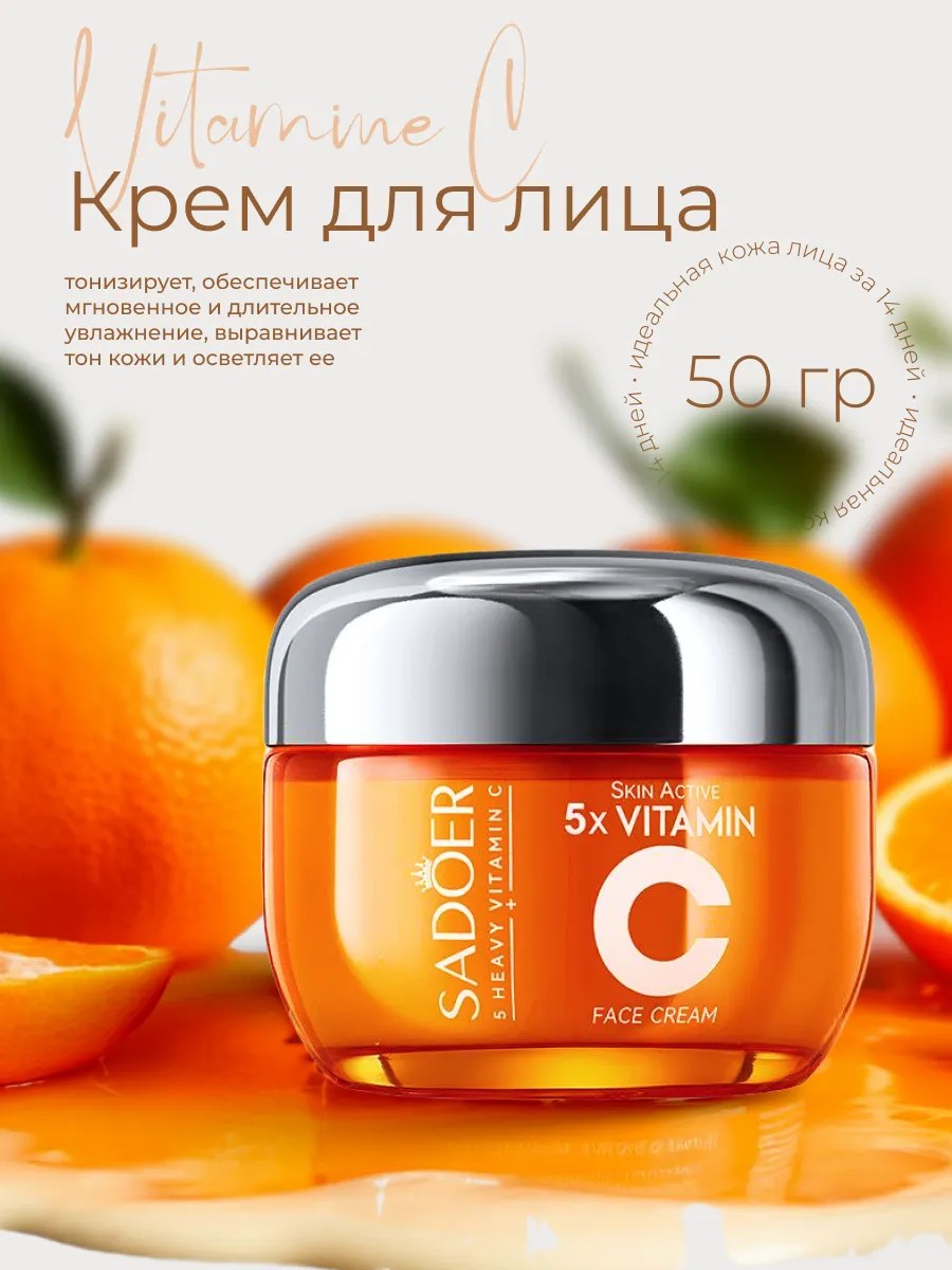 Универсальный крем для лица увлажняющий с витамином С обеспечит качественное увлажнение и восстановление липидного барьера кожи. Такой уход за лицом защитит кожу от обезвоживания и негативного влияния окружающей среды. Дневной крем для лица антивозрастной ничем не хуже корейской косметики и действует как витаминный коктейль для кожи, который глубоко увлажняет, быстро впитывается и не оставляет ощущения пленки на лице. Подарите своей коже уход, который вы заслуживаете. Зайдите на наш магазин бренда SADOER OFFICIAL, где представленна огромный ассортимент уходовой и декоративной косметики и соберите свой идеальный косметический набор, который идеально подойдет в качестве подарка сестре, коллеге на людой праздник и просто так. Он крем для лица от морщин станет отличной «дышащей» основой для макияжа и подходит для кожи любого типа и всех возрастов. Мы объединили лучшие качества ингредиентов для длительного увлажнения и базового ухода за кожей любого типа. Витамин С сокращает процесс пигментации, осветляет постакне и мелкие несовершенства, заживляет воспаления и улучшает локальный иммунитет клеток кожи. Как эффективный антиоксидант, витамин С способен «захватывать» и нейтрализовывать свободные радикалы, которые разрушают коллаген, эластин и липидные волокна в клетках кожи, приводя к преждевременному старению. Дополнительную порцию антиоксидантов для красоты и молодости кожи добавляют экстракты апельсина, винограда и витамин Е. В увлажняющий крем для лица входит активные компонентов способствует разглаживанию рельефа крем для лица от морщин, повышается эластичность кожи, выравнивается тон лица, проходят признаки сухости, высыпаний и ранних морщинок. Используйте ночной крем для лица утром после очищения, тонизирования кожи и перед нанесением SPF-крема. Крем для лица дневной упакован в алюминиевую тубу — лёгким нажатием можно отрегулировать необходимое количество для экономичного расхода. Наносите на лицо, шею и зону декольте каждый раз, когда требуется увлажнение.