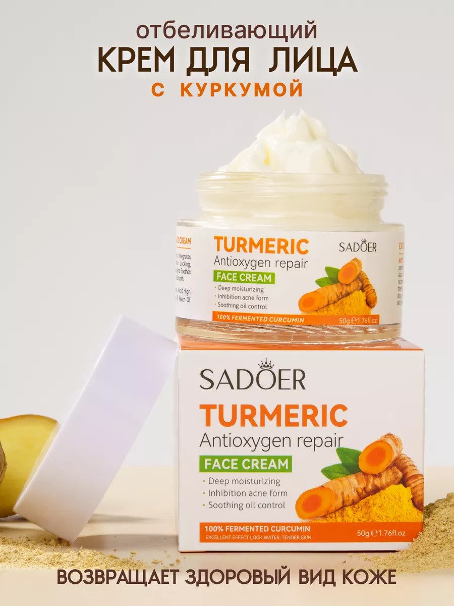 Универсальный крем для лица увлажняющий с экстракотом куркуму обеспечит качественное увлажнение и восстановление липидного барьера кожи. Экстракт куркуму обладает противовоспалительным эффектом и поможет избавиться вам от акне и прыщей. Дневной крем для лица антивозрастной ничем не хуже корейской косметики и действует как витаминный коктейль для кожи, который глубоко увлажняет, впитывается и не оставляет ощущения пленки. Подарите своей коже уход, который вы заслуживаете. Зайдите на наш магазин бренда SADOER OFFICIAL, где представленна огромный ассортимент уходовой и декоративной косметики и соберите свой идеальный косметический набор, который идеально подойдет в качестве подарка сестре, коллеге на людой праздник и просто так. Он крем для лица от морщин станет отличной «дышащей» основой для макияжа и подходит для кожи любого типа и всех возрастов. Мы объединили лучшие качества ингредиентов для длительного увлажнения и базового ухода за кожей любого типа. Витамин С сокращает процесс пигментации, осветляет постакне и мелкие несовершенства, заживляет воспаления и улучшает локальный иммунитет клеток кожи. Как эффективный антиоксидант, витамин С способен «захватывать» и нейтрализовывать свободные радикалы, которые разрушают коллаген, эластин и липидные волокна в клетках кожи, приводя к преждевременному старению. Дополнительную порцию антиоксидантов для красоты и молодости кожи добавляют экстракты апельсина, винограда и витамин Е. В увлажняющий крем для лица входит активные компонентов способствует разглаживанию рельефа крем для лица от морщин, повышается эластичность кожи, выравнивается тон лица, проходят признаки сухости, высыпаний и ранних морщинок. Используйте ночной крем для лица утром после очищения, тонизирования кожи и перед нанесением SPF-крема. Крем для лица дневной упакован в алюминиевую тубу — лёгким нажатием можно отрегулировать необходимое количество для экономичного расхода. Наносите на лицо, шею и зону декольте каждый раз, когда требуется увлажнение.