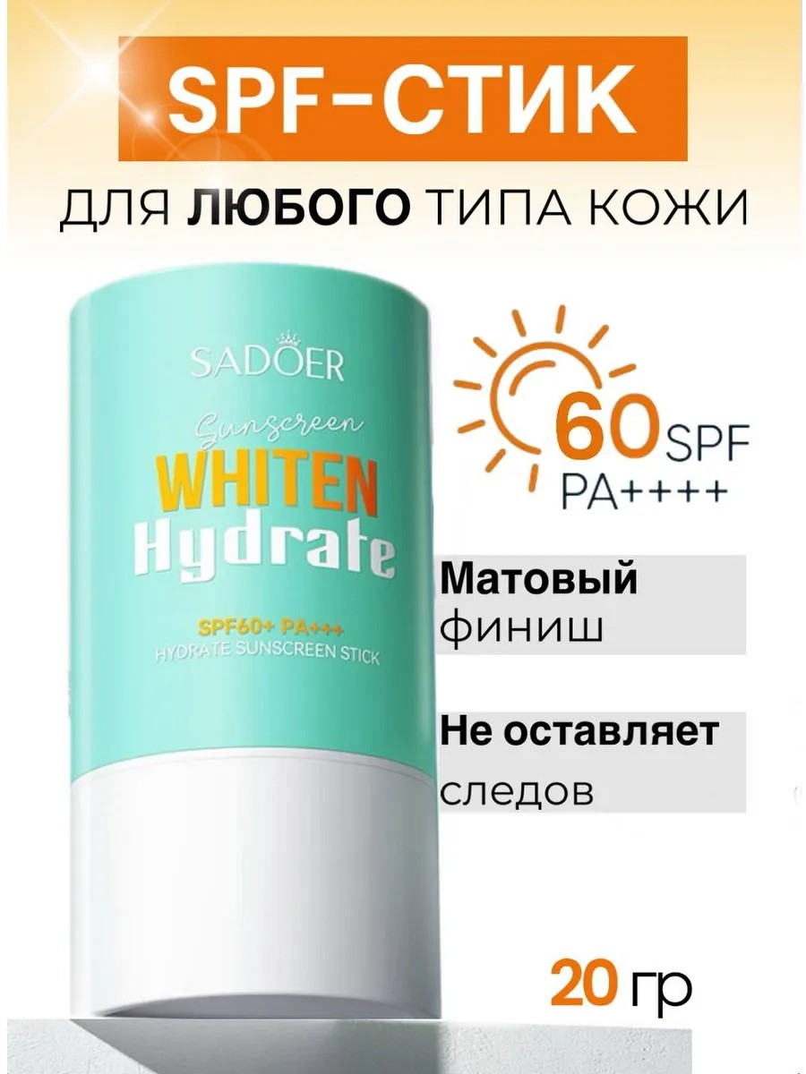 Солнцезащитный крем SADOER SPF 60 – надежная защита и уход для вашей кожи! Он эффективно предотвращает солнечные ожоги и преждевременное старение, обеспечивая максимальную защиту от UVA- и UVB-лучей благодаря современным УФ-фильтрам. Обогащенный кокницией индийской и центеллой азиатской, крем увлажняет, восстанавливает и заживляет кожу. Удобный стик не оставляет жирных следов и идеально подходит для нанесения на лицо и тело, включая труднодоступные участки. Крем компактен, идеален для путешествий и может использоваться в качестве базы под макияж.