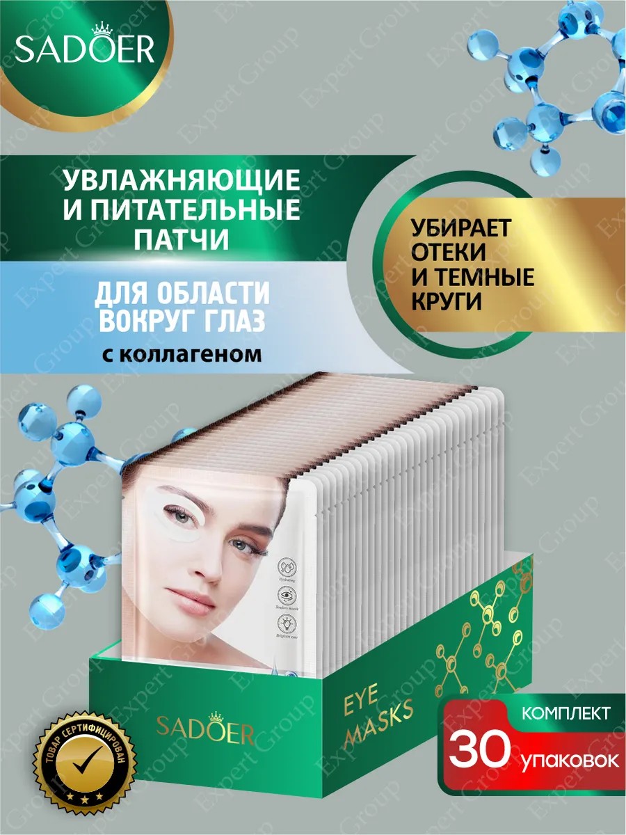| Комплектация | Увлажняющие и питательные патчи для кожи вокруг глаз Sadoer с коллагеном 2,7 гр х 30 шт.; уходовая косметика; набор косметики; патчи от отеков; Гидрогелевые патчи для глаз; Патчи для глаз от морщин; Маска для лица; патчи для глаз; набор патчей; патчи; патчи для глаз от отеков и мешков; Патчи для глаз от отеков |