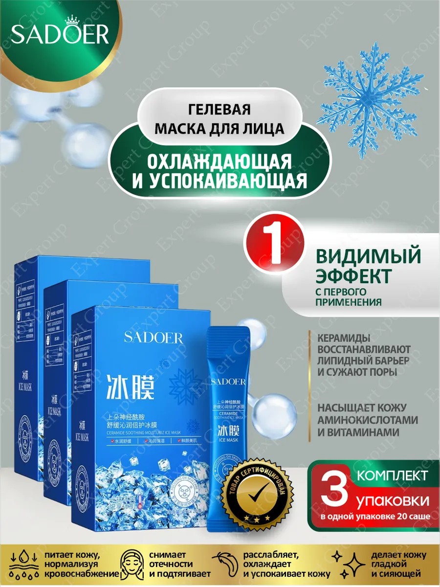 | Комплектация | Охлаждающая и успокаивающая маска для лица Sadoer с керамидами 4 мл. 20 шт./уп. х 3 уп. |