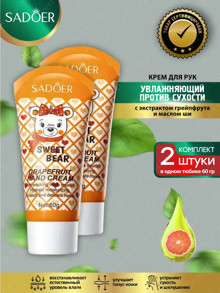 КомплектацияУвлажняющий крем для рук Sadoer Sweet Bear с экстрактом грейпфрута и маслом ши 60 гр х 2 шт