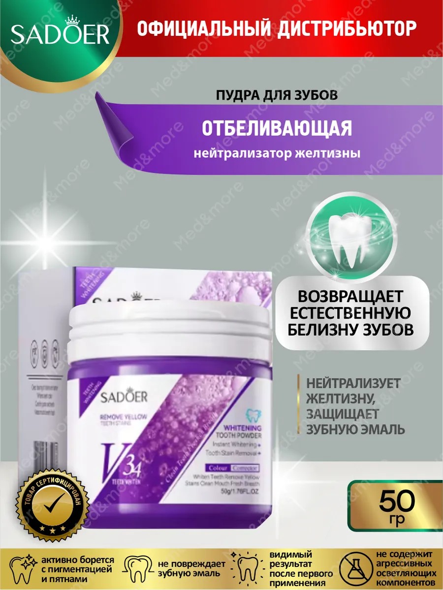 | Полное наименование товара | Осветляющая пудра для зубов Sadoer нейтрализатор желтизны 50 гр |