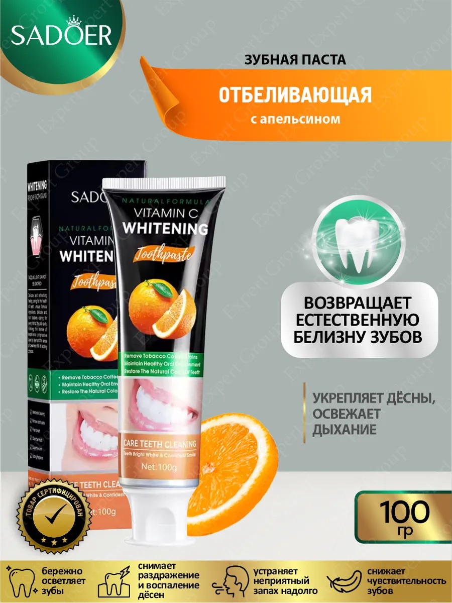 | Полное наименование товара | Осветляющая зубная паста Sadoer с апельсином 100 гр |