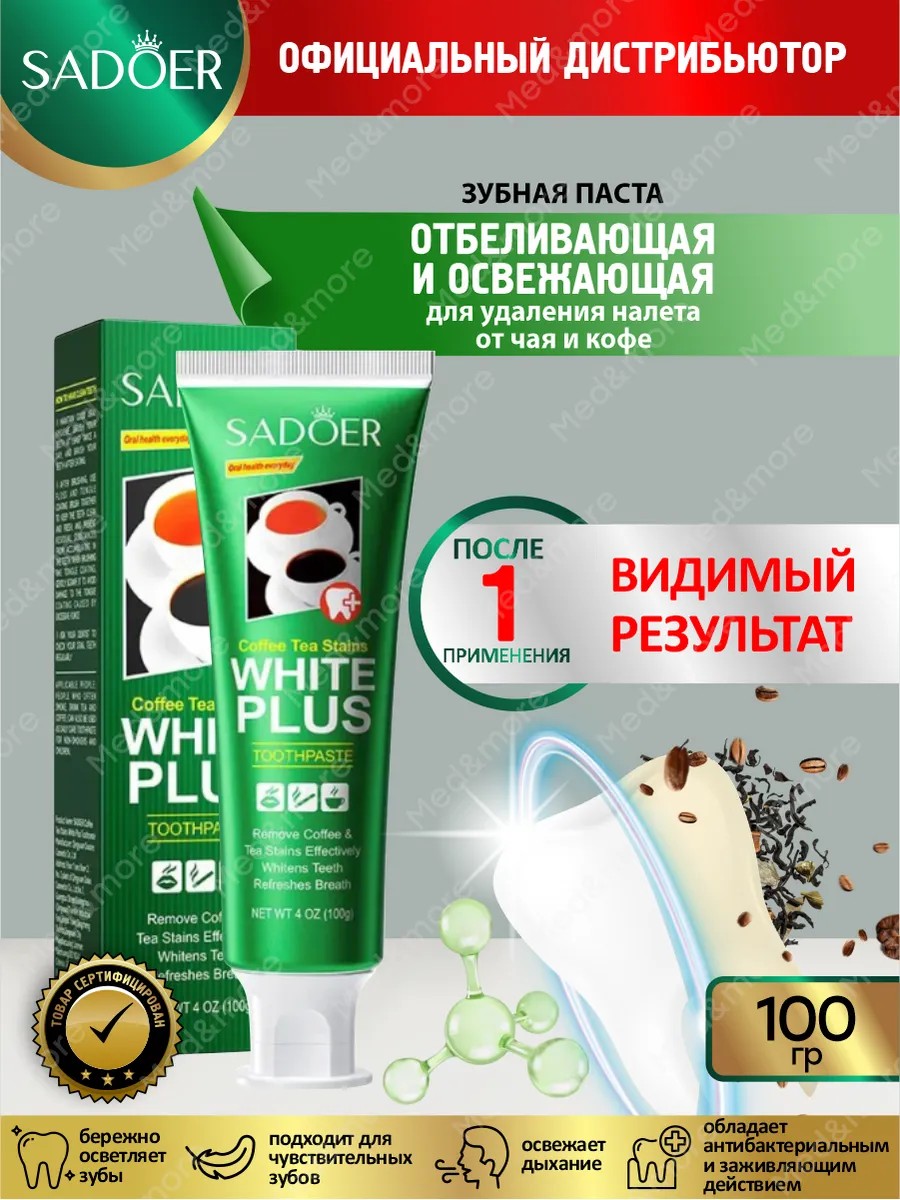 | Полное наименование товара | Осветляющая и освежающая зубная паста для удаления налета от чая и кофе Sadoer 100 гр |