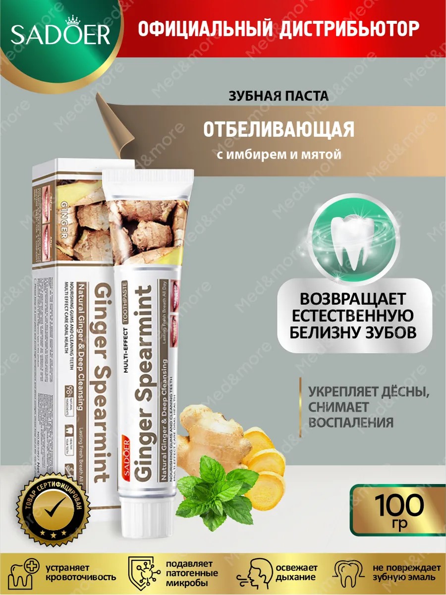 Отбеливающая зубная паста Sadoer с имбирем и мятой 100 гр — отличное средство для поддержания здоровья зубов и десен.