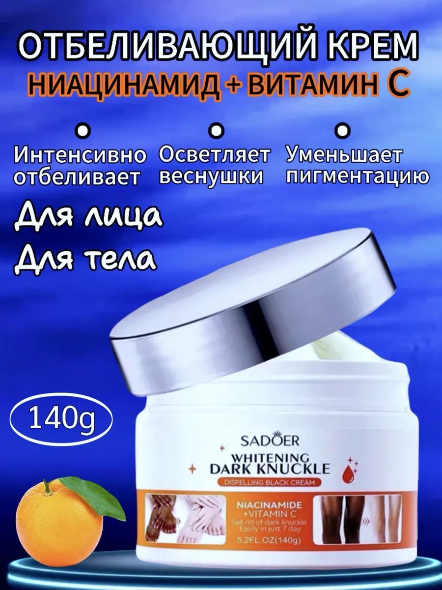 Отбеливающий крем для лица, тела, для шеи и декольте Sadoer – натуральное средство, которое пригодится всем, кто столкнулся с проблемами пигментации и неровным цветом лица. Крем экспигмент сильная защита от недостатков кожи и сможет навсегда избавить вас от пигментных пятен. Его можно использовать для всего тела: руки, ноги, область шеи, зону декольте, подмышек. Косметика разработана в Корее, и создана по корейской технологии, эффективно отбеливает пигментные пятна с зоны бикини, сосков. Также защитный крем отлично выравнивает тон кожи, улучшает упругость и обеспечивает ей здоровый и ровный цвет на долгое время, уменьшает морщины, замедляет старение. Профессиональный крем для тела идеален для осветления и способствует для удаления постакне и от прыщей. Осветляющее средство имеет антиоксидантное действие и идеально как для подростков, так и для возрастной группы. Он имеет гипоаллергенный питательный состав с активными компонентами - ниацинамид и витамин С. Помимо увлажнения, выравнивания, успокаивающий спектр действий, cream имеет заживляющий эффект, восстанавливающий, устраняет шелушения и помогает людям с витилиго. Крем с витаминами expigment можно использовать даже для чувствительной кожи вокруг глаз. Натуральный крем имеет легкую текстуру, придает коже сияние, создает матирующий эффект. Его можно использовать ежедневно как дневной и ночной против сухости. Средство для отбеливания и увлажнения не содержит синтетических компонентов, не вызывает аллергии - гипоаллергенный и не оставляет жирного блеска. Крем для интимных зон позволяет выглядеть вашей коже максимально естественно и свежо. Его можно использовать под тональный крем, легкий по структуре. В состав входит аскорбиновая кислота. С эффектом отбеливания крем — отличный подарок на 8 марта маме, бабушке или любимой. Применение: После умывания нанесите увлажняющий крем для отбеливания на проблемную зону. Массируйте до полного впитывания. Идеальный подарок любой женщине – маме, сестре, коллеге.