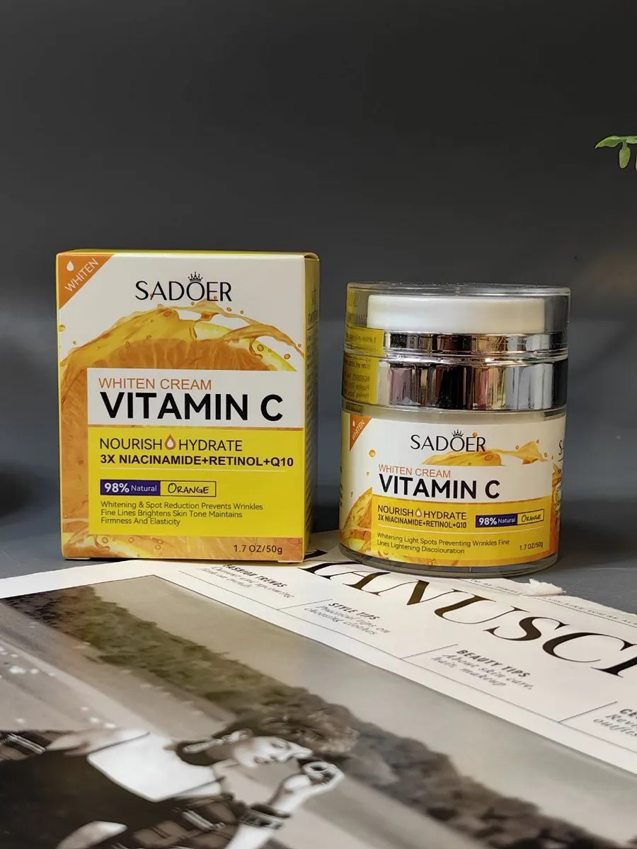 Sadoer Vitamin C Face Cream, a whitening face cream, is designed specifically for women who want to improve their skin's appearance. It has anti-aging properties and helps combat pigmentation, creating a more even skin tone.