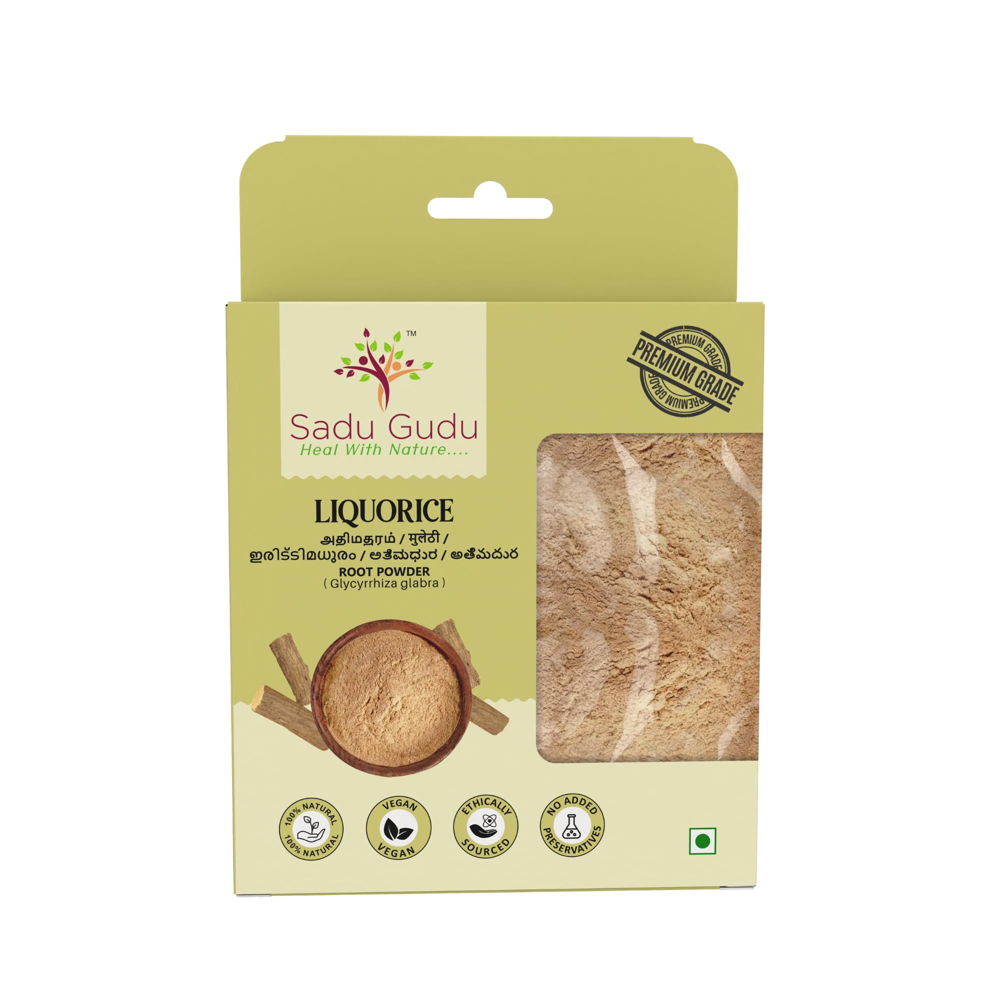 Sadu Gudu 100% Natural Pure Mulethi Powder | Adhimadhuram Powder | Yashimadhu | Liquorice | Glycyrrhiza glabra | for Hair and Skin Care -0.22 lbs
